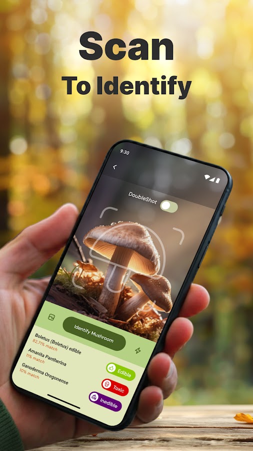 Это приложение позволяет идентифицировать виды грибов. Используя искусственный интеллект, изображение с камеры в реальном времени анализируется, чтобы показать, каким грибом он может быть и является ли он съедобным или ядовитым.