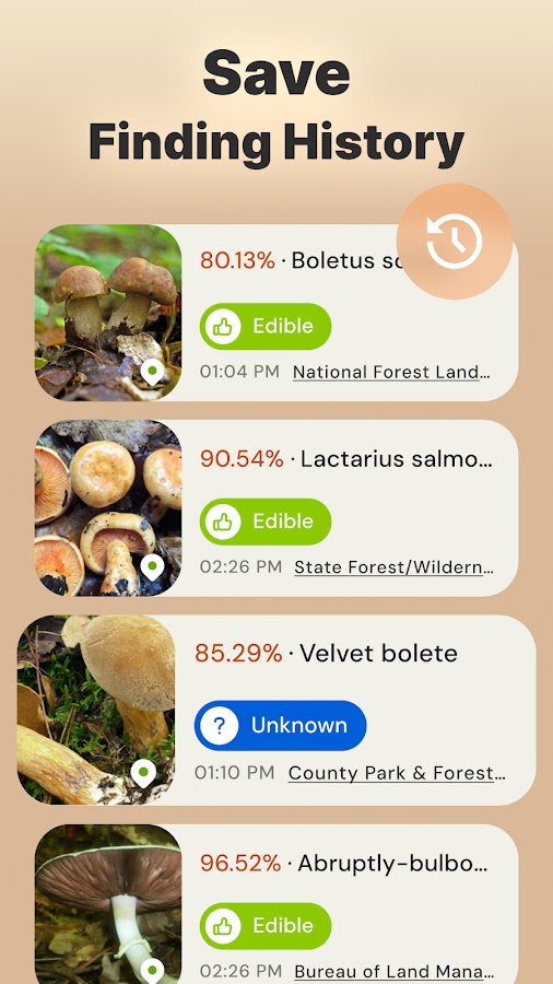 !! Отказ от ответственности !! Приложение отказывается от любой ответственности за ущерб, который может возникнуть в результате использования информации, содержащейся в этом приложении. Это приложение содержит информацию о идентификации и съедобности диких грибов, но не предназначено быть руководством для их безопасного потребления. Любой, кто хочет есть дикие грибы, должен быть абсолютно на 100% уверен в их идентификации и должен проконсультироваться с опытным человеком по съедобности грибов перед употреблением любого дикого гриба. Приложение не может нести ответственность за любые нежелательные последствия, которые могут произойти, если человек решит есть дикие грибы.