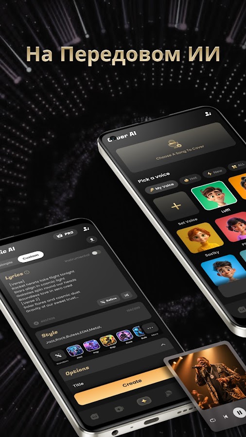 Мгновенная генерация песен: всего за несколько нажатий наш надежный искусственный интеллект генерирует песни, биты и кавер-версии, адаптированные к выбранному вами стилю. Испытайте острые ощущения от создания оригинальной музыки и ремиксов без какой-либо формальной подготовки или знаний.