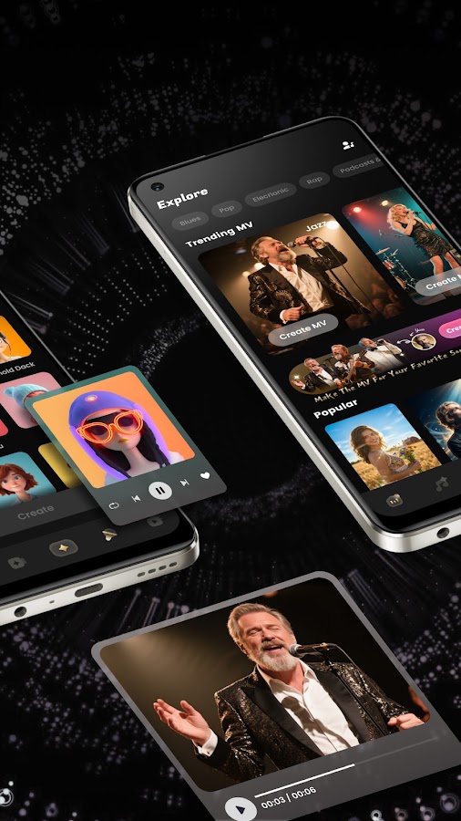 Универсальный музыкальный создатель: с помощью приложения Music AI для Android и подсказок профессиональных музыкальных стилей, приложения для создания музыки, каверов Banger AI, легко микшируйте, делайте ремиксы и мастерируйте свои треки.