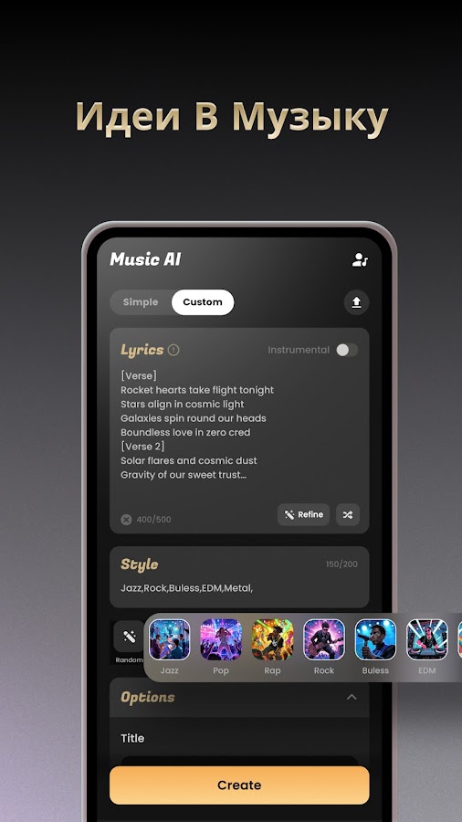 Описание Музыкальный AI Генератор песен