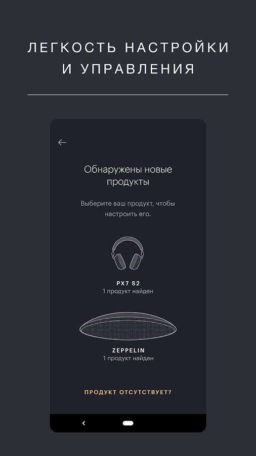 Приложение Bowers & Wilkins Music предоставляет вам возможность настраивать ваши продукты с поддержкой Formation и управлять ими, в том числе Zeppelin и Panorama 3. Приложение поддерживает также настройку наших беспроводных наушников и управление ими.