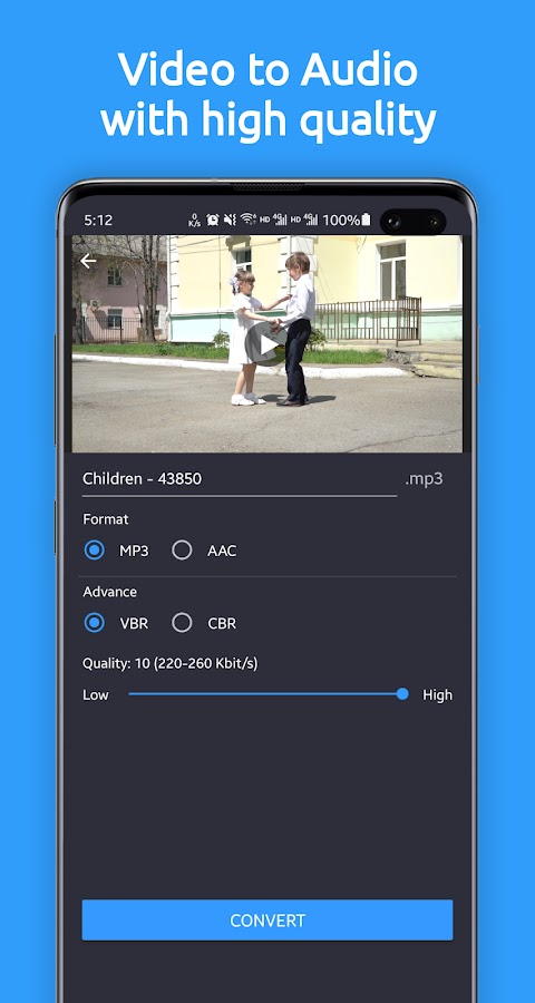 -Видео в аудио: извлечение звука из видео и поддержка регулировки качества звука от низкого до высокого, в общей сложности можно настроить 10 уровней