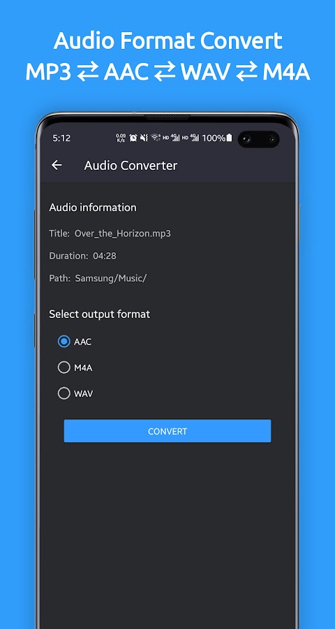 -Конвертация музыкального формата: изменение одного музыкального формата на другой, например: AAC в MP3, M4A в MP3, MP3 в WAV и т. Д.