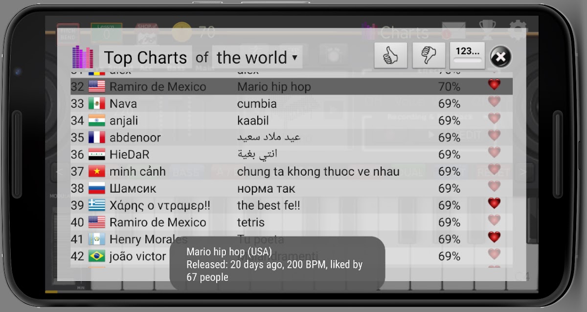 Играть на фортепиано, как и в реальной жизни! Вы начинаете с помощью нескольких инструментов, но вы будете разблокировать более путем достижения проблем или усвоения уроков клавиатуры. Это идеально подходит для начинающих: отображение названия аккордов на клавишах, брать уроки. Практика в общественном транспорте с помощью головных телефонов. И если вы изобрели хорошую песню, вы можете записать его со всеми функциями, которые вы использовали — эффекты, изменение громкости, высоты тона и т.д., и загрузить его в хит-парадах!