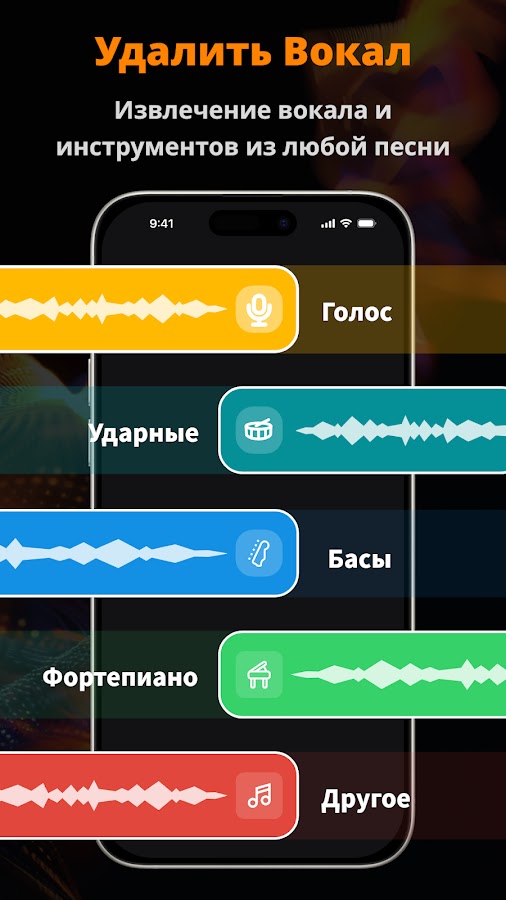 Вы хотите извлечь вокал и инструментальные дорожки из песен? Хотите удалить вокал из аудио, сделать акапеллу? С помощью MusicLab вы можете легко разделить песни на изолированные треки.