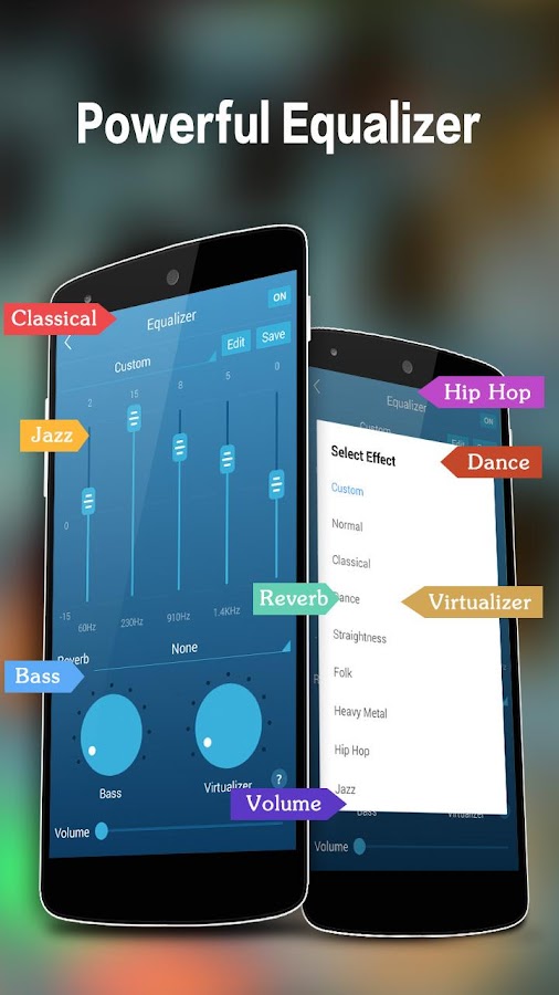 Музыкальный и Mp3-плеер с мощным эквалайзером, стильным дизайном пользовательского интерфейса, быстрым поиском всех музыкальных файлов.