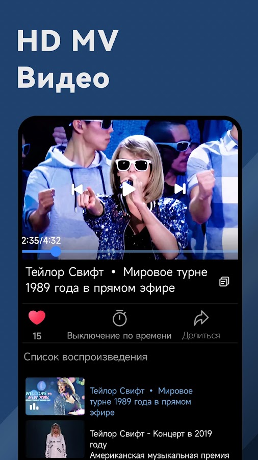 * Создайте плейлисты с предложениями песен или сотрудничайте с другими поклонниками музыки, чтобы создать идеальный плейлист.