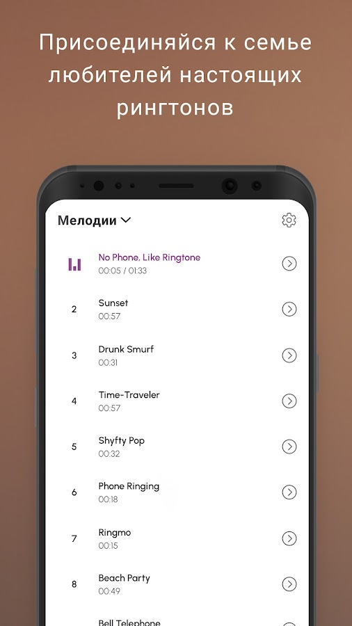 Следовать моде — значит иметь на своём Android Музыкальные рингтоны и звуки на телефон. Персонализируй свой телефон и сделай его неповторимым! Популярные мелодии для звонка собраны в одном месте — в этом приложении.