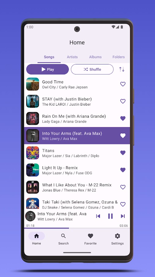 Создавать персональные плейлисты теперь просто с МП3 плеером MusicMax. Добавьте любые песни одним касанием, создавая свои уникальные списки для любой обстановки. Хотите создать плейлист под каждое настроение? С музыкальным проигрывателем от MusicMax слушать музыку без интернета стало проще.