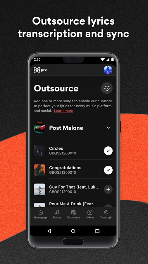 • Приобретите аутсорсинговые услуги, чтобы опытные кураторы Musixmatch доработали ваши тексты для всех платформ.