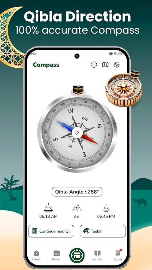 ваше надежное мусульманское приложение для направления киблы, времени молитв, Корана с переводом, ежедневных дуа и календаря хиджры.