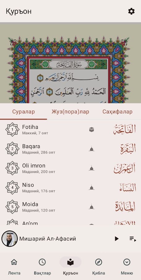 8. Қуръони Каримнинг арабча матни, MP3 қироатлари ва таржимаси