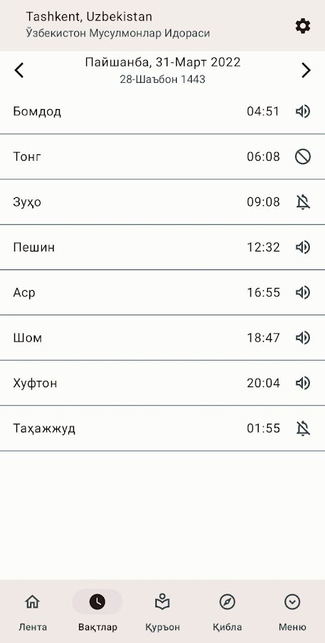 Информация о Муслим тақвими (намоз ва азон)