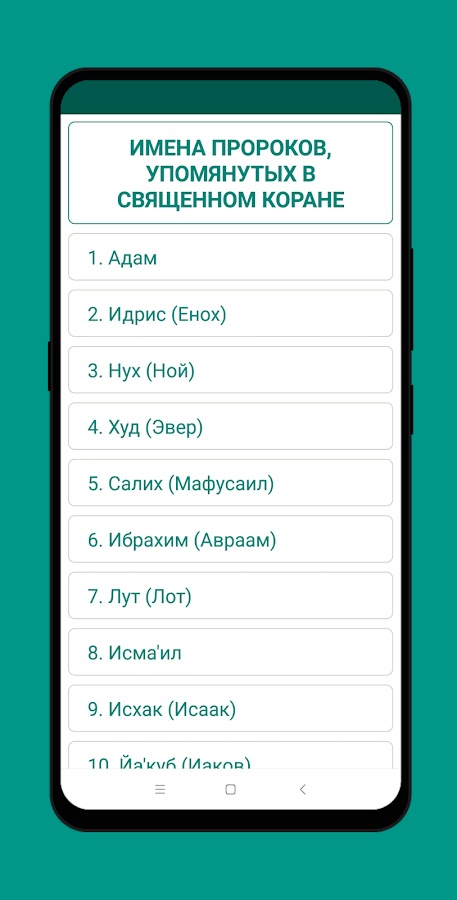 ИМЕНА ПРОРОКОВ, УПОМЯНУТЫХ В СВЯЩЕННОМ КОРАНЕ