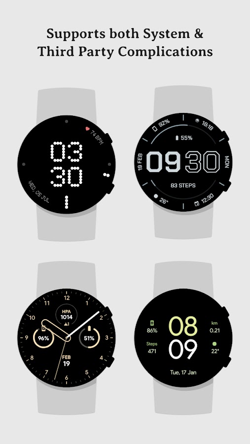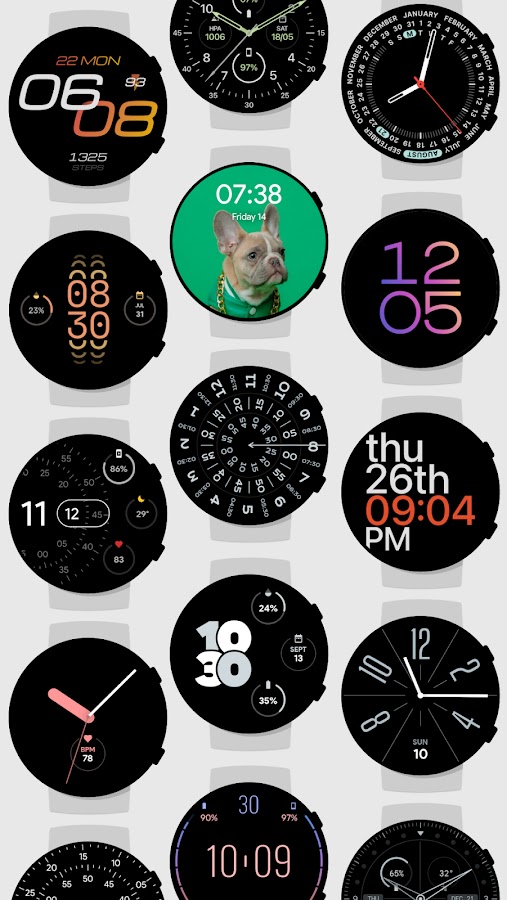 Это первое в своем роде приложение с коллекцией нативных циферблатов в одном приложении с полной поддержкой виджетов Wear OS. Каждый циферблат создан нами вручную для идеальной работы на ваших носимых устройствах.