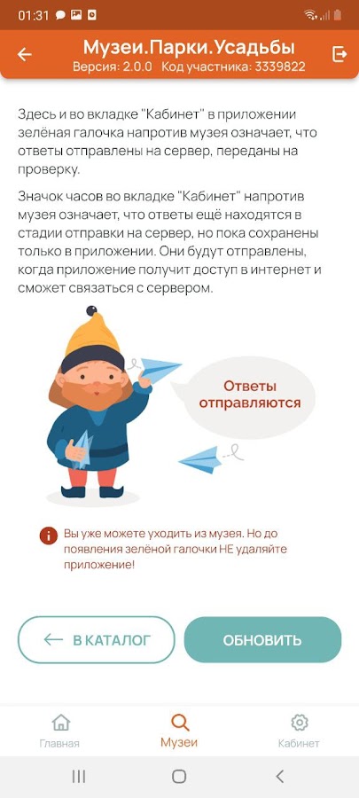 Получить задания и отправить ответы можно только в том случае, если вы находитесь в музее, обязательно включите геопозицию.