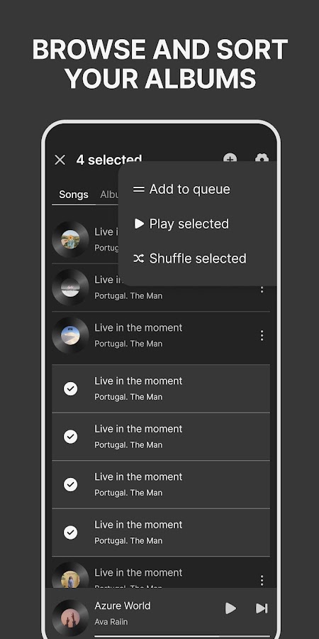 Легко организуйте свою музыкальную коллекцию с помощью нашего интуитивно понятного управления библиотекой. Сортируйте по исполнителю, альбому, жанру или создавайте собственные плейлисты для любого настроения.