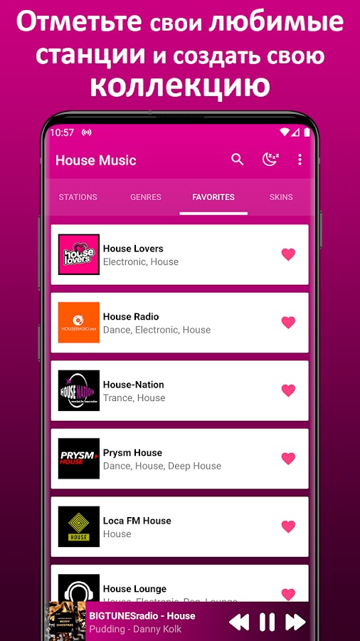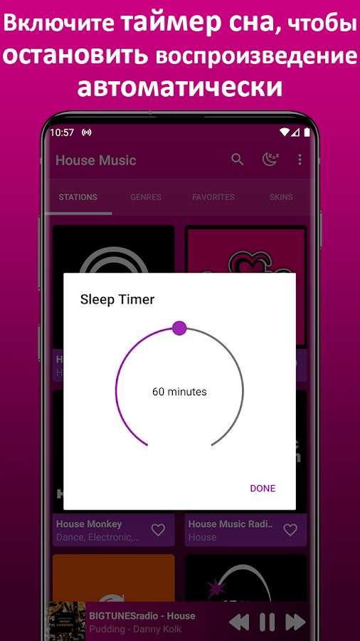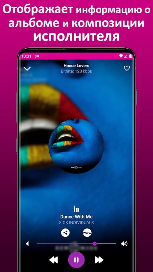 Вам не нужен загрузчик или приложения для загрузки музыки в формате mp3, вы можете бесплатно наслаждаться онлайн-радио-плеером House Music для телефона Android с лучшими звуками живой музыки, самым простым способом слушать без загрузки файлов mp3, получать удовольствие караоке-пение или угадай текст любимой песни. Вы не сможете слушать музыку в автономном режиме без Интернета или Wi-Fi, так как это необходимо для загрузки потокового mp3. При настройке на радио будет приостановлено воспроизведение мелодий звонка при входящем звонке или при воспроизведении звуковых уведомлений.