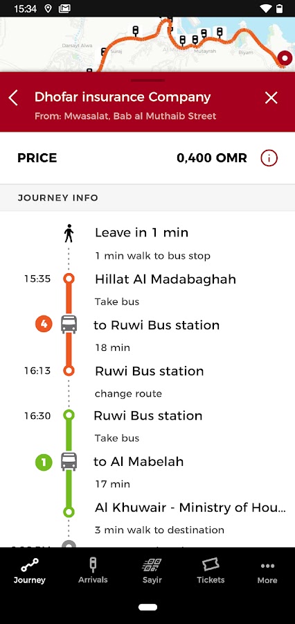 В приложении есть интерактивная карта Омана, на которой вы можете в режиме реального времени проверить прогнозы прибытия для всех остановок на всех маршрутах в сети.