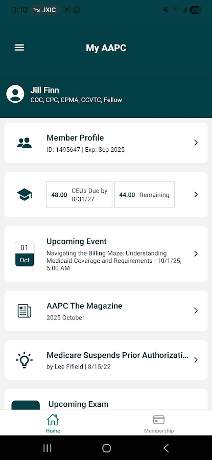 • Просмотр и обновление вашего профиля AAPC