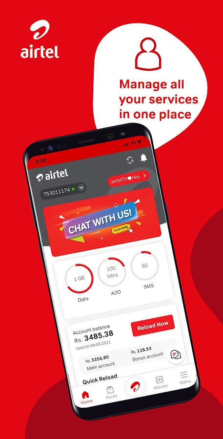 Приложение My Airtel — это комплексная бесплатная платформа, разработанная для удобного управления всеми вашими предоплаченными и постоплатными соединениями Airtel с вашего мобильного устройства. Используя новые технологии, приложение было полностью переработано, чтобы предоставить улучшенный пользовательский интерфейс с более гибким интерфейсом, дополнительными услугами и новыми захватывающими предложениями.