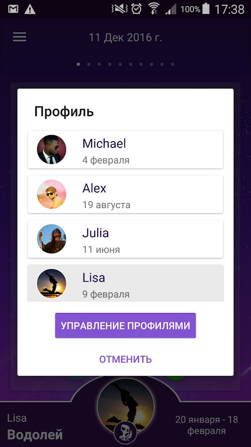 Создать профиль для ваших друзей и вашей семье и читать их гороскоп.