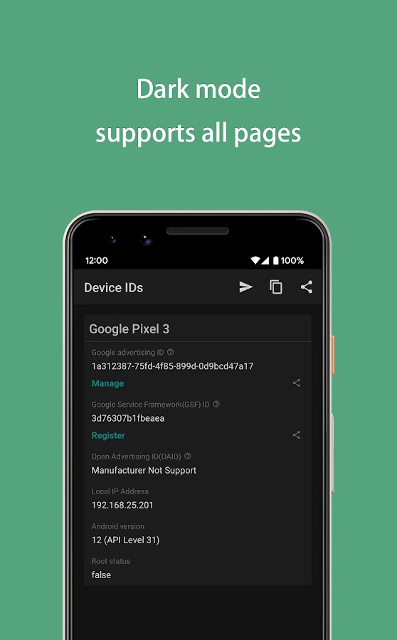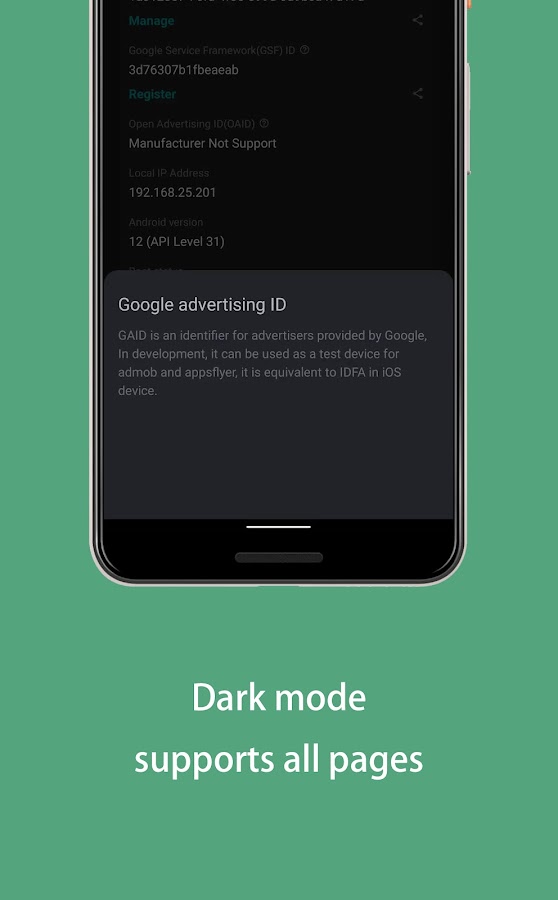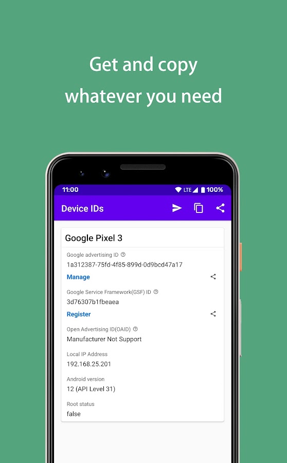 Просматривайте и делитесь своим идентификатором устройства, рекламным идентификатором Google (AAID, GAID), идентификатором Google Services Framework (идентификатор GSF), OAID и т. д.