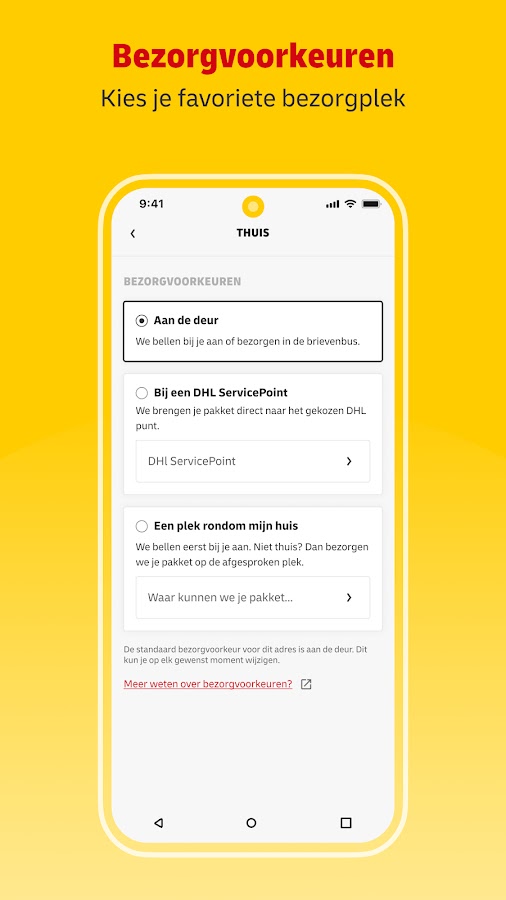 Приложение My DHL доступно на голландском и английском языках. В своем профиле вы выбираете, какой язык предпочитаете. Здесь вы также добавляете дополнительные адреса электронной почты и адреса, на которые вы получаете посылки; например, ваш домашний и рабочий адрес. Поделитесь с нами своим мнением, если вы считаете, что это может быть лучше, или просто сообщите нам, что вам это нравится. Мы всегда стараемся сделать My DHL лучше.
