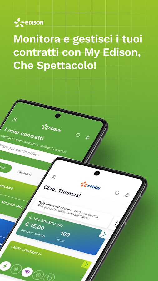 Получите доступ к приложению My Edison, используя те же учетные данные, которые вы используете для доступа к частной зоне www.edisonenergia.ito, или зарегистрируйтесь непосредственно из приложения.