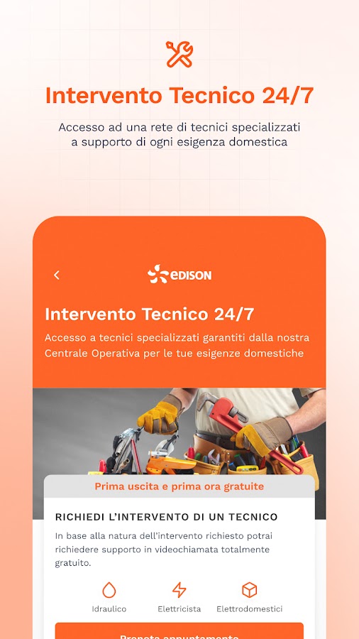 — Знаете ли вы, что услуга круглосуточного технического обслуживания включена в ваше предложение по электричеству и/или газу? При первом вмешательстве выход и первый час родов бесплатны! Вы сможете положиться на сеть специализированных технических специалистов, готовых вмешаться для решения ваших домашних задач. По любым вопросам вы можете обращаться в Операционный центр Эдисон каждый день 24 часа в сутки.