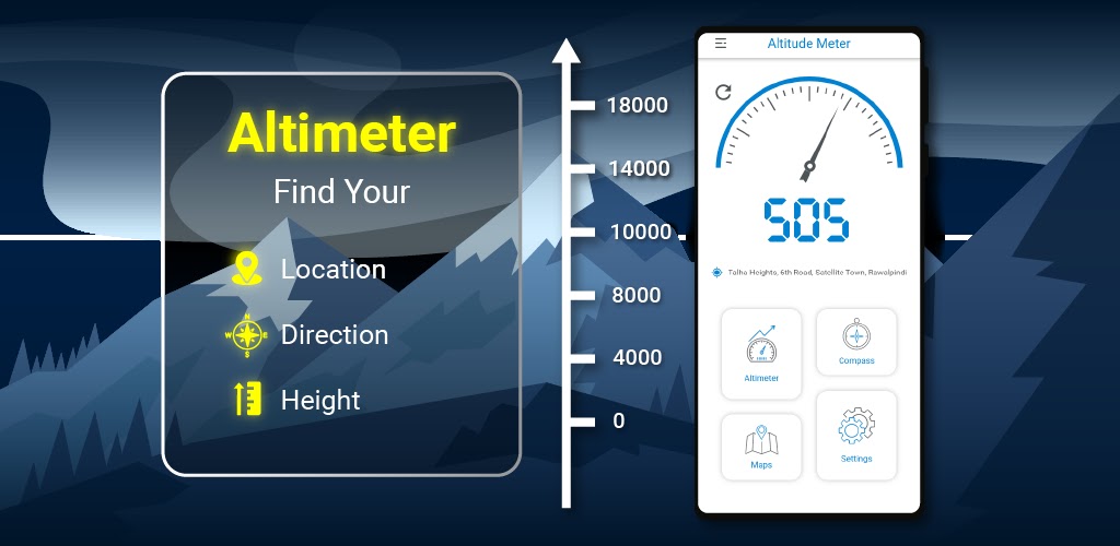 Бесплатное приложение Altimeter Altitude — это удобное мобильное приложение, позволяющее вам точно определять высоту над уровнем моря с указанием вашего точного местоположения на земле. Приложению My Elevation GPS требуется местоположение вашего устройства, чтобы получить текущую высоту и местоположение GPS из сигнала GPS.