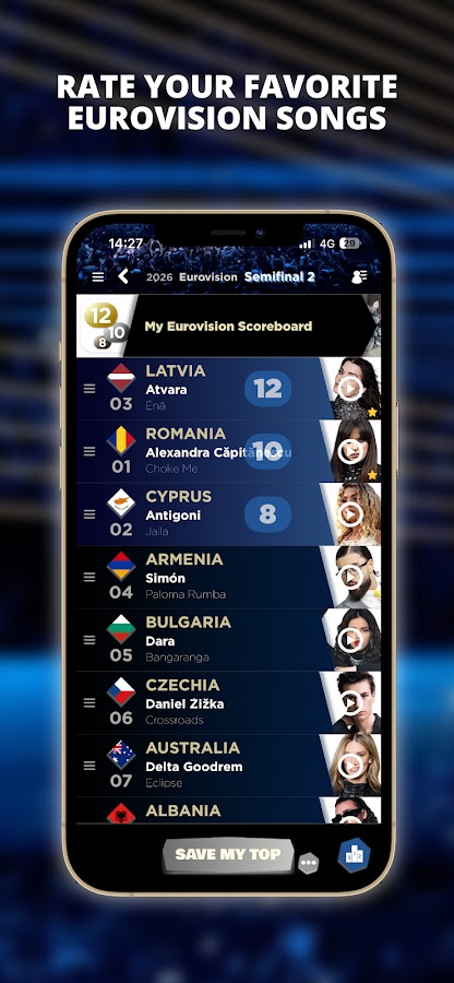 • Создавайте и делитесь своим Eurovision топом с друзьями