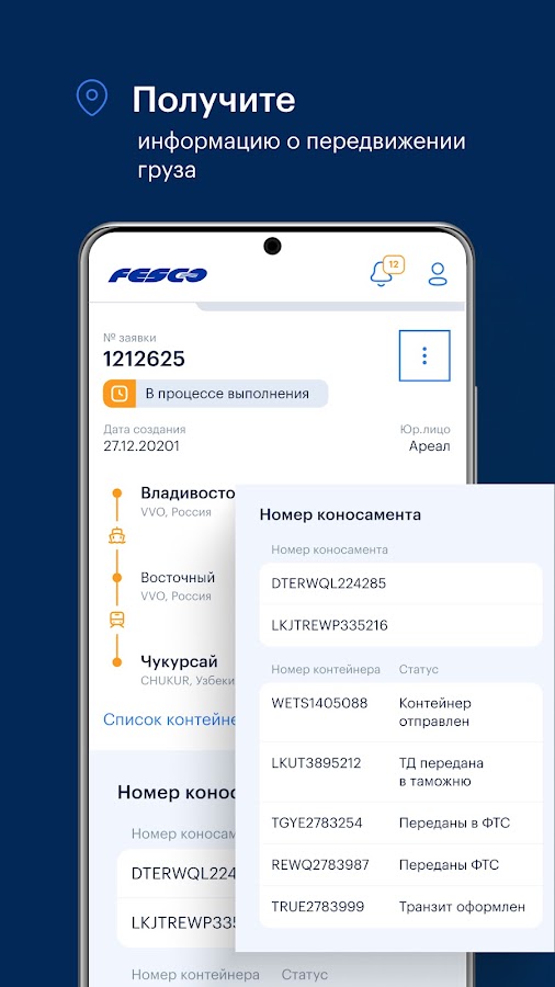 · Отследить процесс оформления грузов и документов по номеру заявки