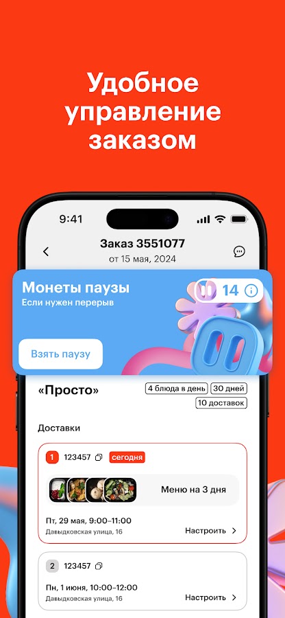 · Управление доставкой: Легко меняйте дату, время и адрес приезда курьера.