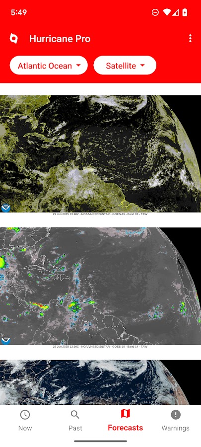 — Карта прогнозов NOAA и спутниковые снимки штормов, если таковые имеются!