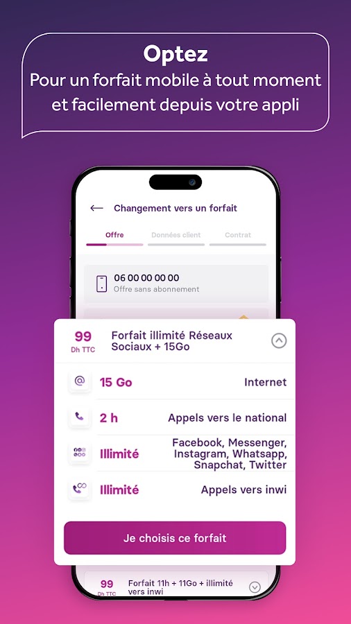 🌍 Активируйте роуминг одним щелчком! Проверяйте тарифы по зонам и странам, активируя подходящий вам тариф. 📲 Подключайтесь к услугам inwi по вашему выбору всего за несколько кликов. 🎁 Компания inwi улучшила свою программу лояльности: теперь программа My inwi Loyalty вознаграждает всех клиентов inwi, независимо от того, используют ли они мобильную связь (пополнение баланса или тарифные планы) или Wi-Fi (i-dar, ADSL Xtra или Fiber), предоставляя бонусные баллы, которые можно обменять на еще более щедрые подарки.