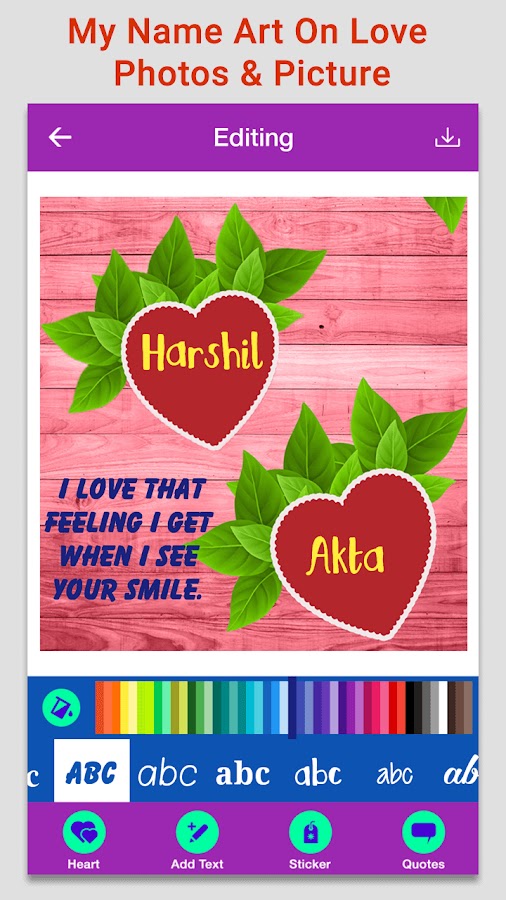 Создавайте красивые фотографии с вашим именем на сердце и пишите свое имя с вашей женой, вашим партнером или любовником, чтобы сделать ваше имя дизайн-арт на любимые фотографии с разными цветами шрифта и шрифтом.