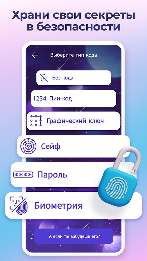✅ Секретный дневник с блокировкой по отпечатку пальца;