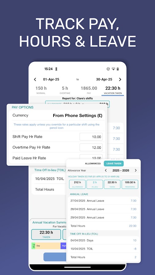 💰 Отслеживайте заработную плату, сверхурочные и отпуска
