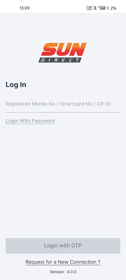 Вход. У нас есть три способа входа в систему для входа в приложение Sun Direct. Вы можете в любое время изменить пароль и номер мобильного телефона с помощью OTP.