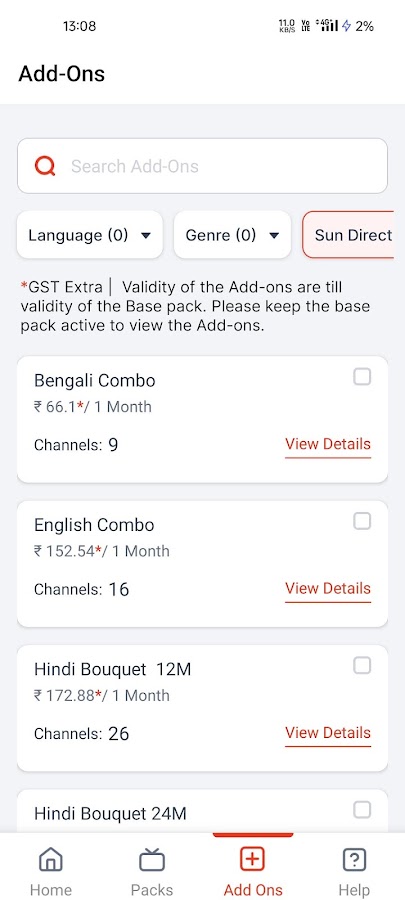 Процесс управления учетной записью: Управляйте своей учетной записью приложения My Sun Direct — добавляйте, удаляйте и изменяйте свои пакеты подписки, добавляйте новые дополнения в свой пакет и отслеживайте наши транзакции через My Sun Direct. Приложение Sun Direct