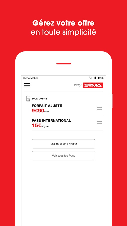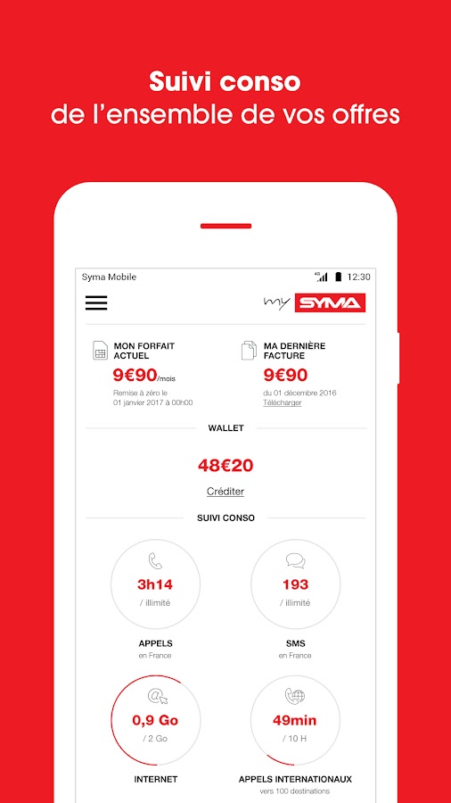 Мой Сыма собирает все ваши счета в одном приложении, чтобы удовлетворить ваши потребности, где вы находитесь, и всякий раз, когда вы хотите. За несколько щелчков мыши, следуют ежедневного потребления, просматривать и загружать ваши счета, подписаться или изменить свое предложение, пополнить свой кошелек и купить предоплаченные Pass. И это еще не все, потому что мой Сыма также позволяет управлять ваши личные данные и загрузить ваш идентификатор безопасности.