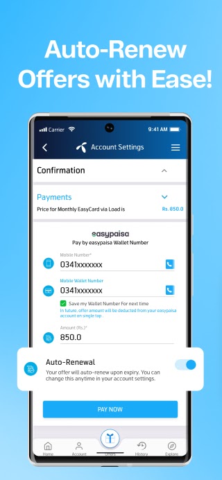 — Получите пополнение баланса, выбрав свой аккаунт мобильного кошелька, включая Easypaisa или любую банковскую дебетовую / кредитную карту.