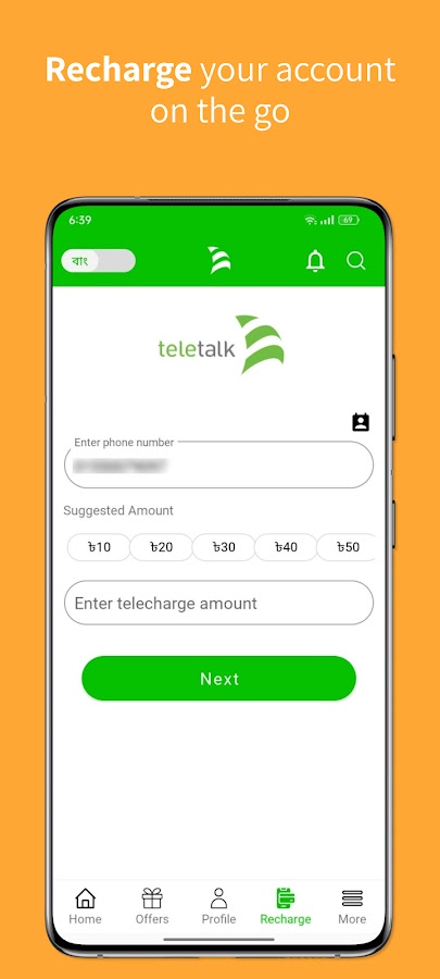 Teletalk — единственный государственный оператор мобильной связи Бангладеш представляет приложение My Teletalk. Абоненты получат удивительные впечатления от приложения My Teletalk не только потому, что его функция пополнения счета мобильного телефона и покупки интернет-пакетов в основном доступна, как и приложение операторов, но и из-за дополнительных услуг, таких как вступительные взносы, сборы за набор персонала, а также оплата коммунальных услуг.