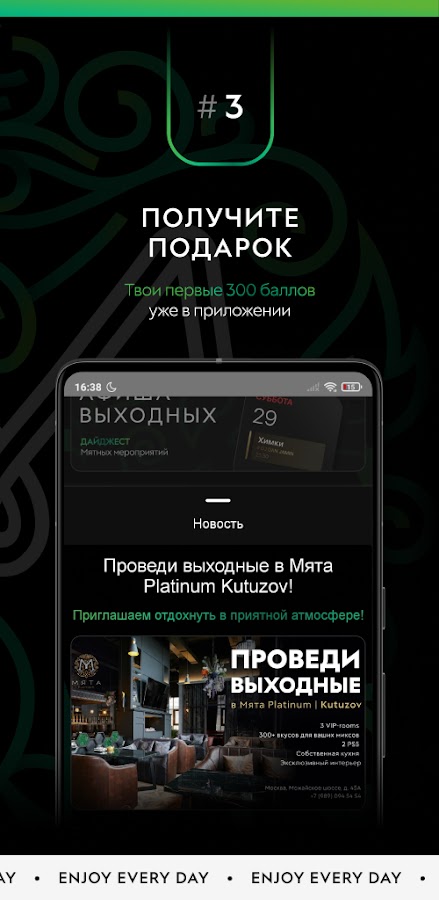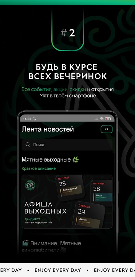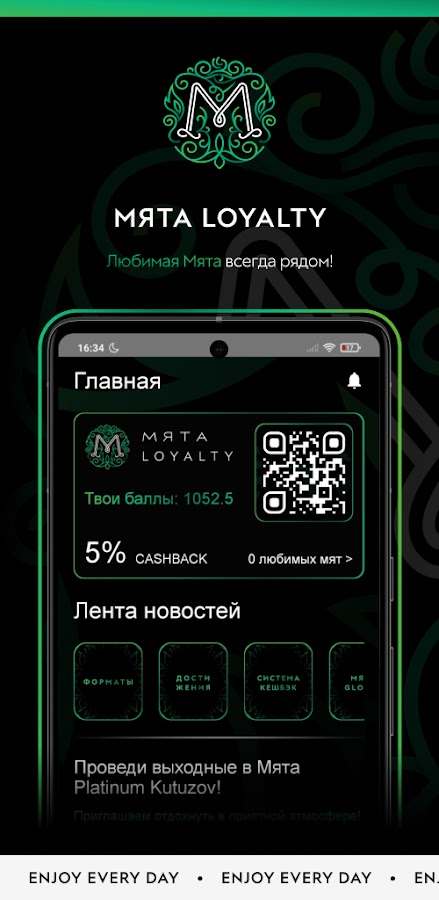 Многофункциональный сервис, который включает систему лояльности сети Мята и мониторинг новостей бренда.