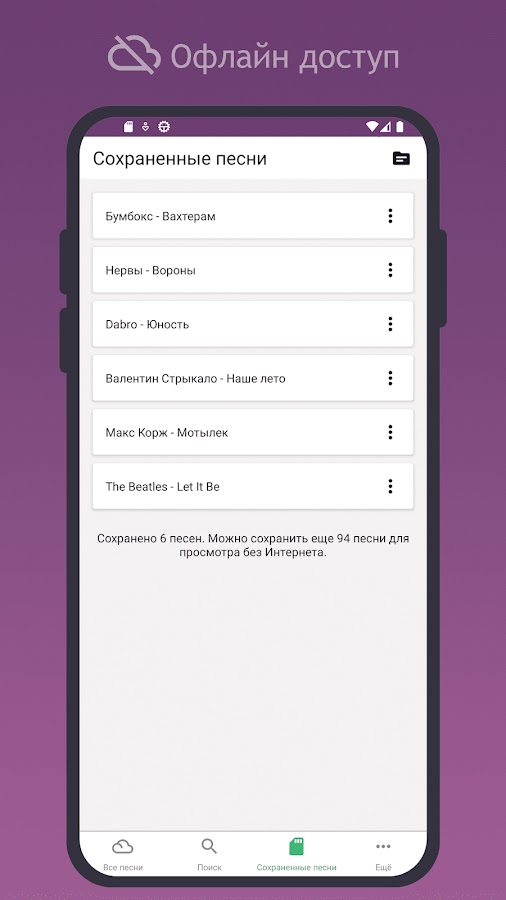 — Офлайн доступ к сохраненным песням