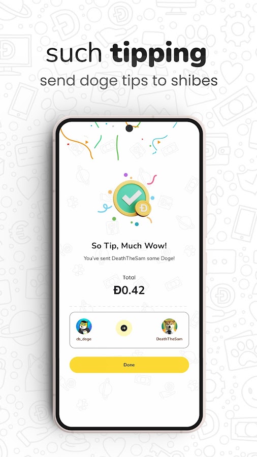 Распространяйте любовь и делитесь Dogecoin со своими друзьями, семьей или любимыми создателями контента, используя функцию чаевых MyDoge. Мгновенно оставляйте чаевые кому угодно и где угодно и выражайте свою признательность всего несколькими нажатиями.