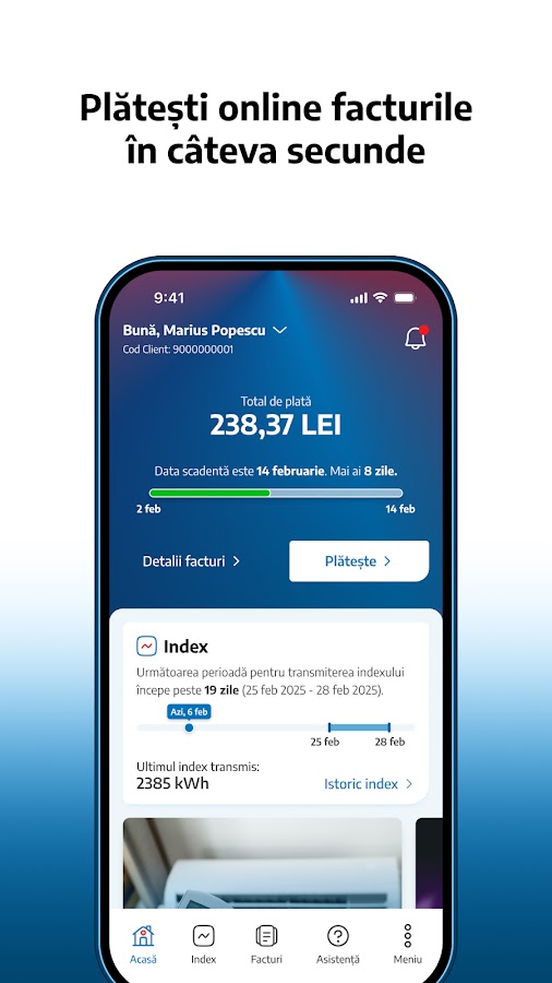 Приложение MyElectrica позволяет управлять учетной записью клиента Electrica Furnizare со смартфона или планшета.