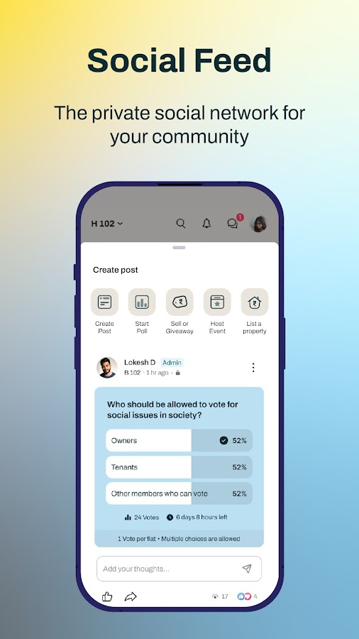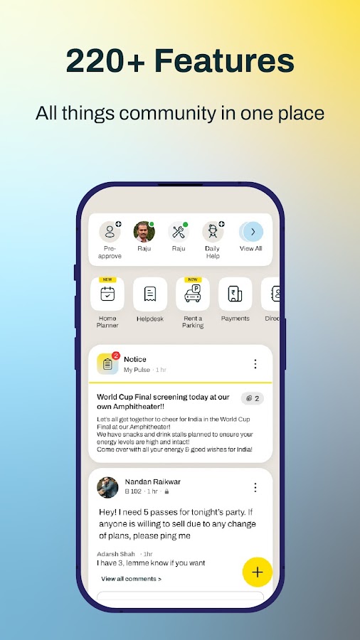 • Участвуйте в обсуждениях, делитесь объявлениями или начинайте общение с соседями
